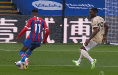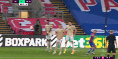 比赛中曼联球门经受的最大考验,来自于上半场补时阶段米利沃耶维奇的任意球,这位水晶宫球员的任意球直接搓向球门左上角的死角,不但角度刁钻,而且速度极快。但这仍然难以突破德赫亚的十指关,西班牙门神横向移动,飞身侧扑,在死角位置将球稳稳扑出。