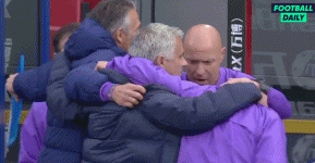 在比赛结束哨响的一刻,穆里尼奥和场边的教练团队得知锁定第6名,心情十分激动和开心,穆帅紧紧将教练组成员抱在一起,几位“大叔”激动地又蹦又跳。