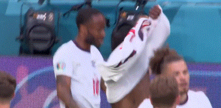 英格兰对阵捷克,萨卡在斯特林进球后脱下球衣的举动让球迷困惑。