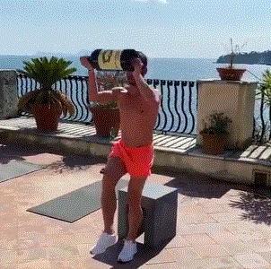那不勒斯前锋梅尔滕斯在社交媒体上发布了一段视频,显示他在隔离期间用巨大的酒瓶作为阻抗进行锻炼。