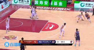 第三节最后时刻,广州队进攻回合,司坤持球上篮不中,代怀博拿到篮板,在后场直接往前“推射”压哨三分,皮球空心命中,吉林以75-70领先进入末节。