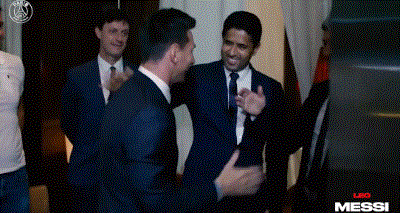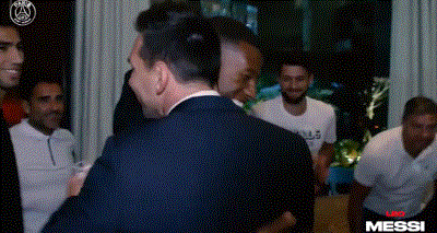 巴黎发布梅西签约全程视频 与老板主帅队友拥抱|GIF