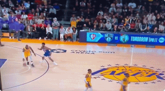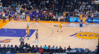 当时,湖人后场发球,随后,詹姆斯在拿到球之后向前场推进,结果蒙克没有上来接应,这也导致詹姆斯运球时出界。