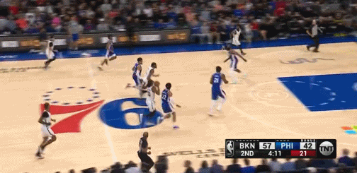随后,在与恩比德的对话中,杜兰特直接带球杀入到篮下,穿过恩比德和哈登的包夹防守将球送进篮筐。