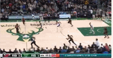 在最后16秒的时候,雄鹿落后对手4分,在这样的情况下,球队发动了快攻。米德尔顿直接从后场带球到前场并且在三分线外弧顶处直接出手三分命中。此时,双方的分差仅有1分。